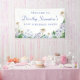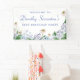 A beautiful welcome sign with the Wow factor that will impress your guests. Soft dusty blue and purple hydrangeas mix with soft blush white and blush white wild roses. The birthday celebrant's name is written in an easy-to-read script font. the Birthday year follows in a bold traditional serif font. All of the text is editable so you can customize your welcome.