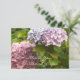 A pretty hydrangea thank you note. Soft pink and mauve hydrangeas with green foliage accent this design. Customize with names as desired.