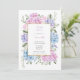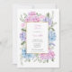 A baby shower invitation with blue and pink hydrangeas.