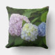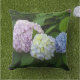 Hydrangeas, pink flowers, blue purple flowers outdoor pillow