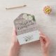 Simply add your names , wedding information, your reply by date, your choice of meals and your name(s) and return address on this easy-to-use template. Easy to Tear off Perforated RSVP Postcard. Just Simply Fold Each Card Into the Outlined Shape, and then Seal and Send, no envelope needed for shipping!