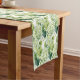 Table runner to accent your table decor is shown in a lovely green-white hydrangea print.