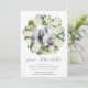 Notre Hydrangea blanche enregistrer la carte de date cadre votre photo fiançailles préférée avec une couronne ronde de fleurs d'hydrangée aquarelle peinte en blanc, accentuée de verdure luxuriante et de lettrage chic. Un choix moderne et élégant pour les mariages de printemps ou d'été. Personnalisez avec vos noms, date mariage, emplacement et site Web mariage en utilisant les champs fournis.