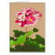 Carte de note dans une illustration japonaise vintage d'une fleur d'hydrangée rose, accentuée de blanc, et de feuilles en émeraude et vert citron, sur un arrière - plan beige, numériquement rehaussée