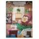 A cozy hedgehog reclines in a comfy chair with a book in this acrylic illustration by Lydia Holloway.