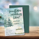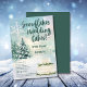 Beautiful and enchanting winter bridal shower invitation featuring modern handwritten style script, snowflakes, wedding cake, evergreens and snow in shades of teal, cool blue and white. Available as a digital download or printed. Design by LeahG of budgetweddinginvites.com