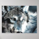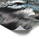 Poster featuring Hypnotic Wolf by wildlife artist Michaeline McDonald of a close-up portrait of a wolf's eyes painted in blue tones. Artwork copyright © Michaeline McDonald. Visit my official website at www.wisetailsart.com.