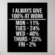 I Always Give 100% At Work Funny Work Quotes Humor Poster