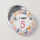 I Am 5 Beautiful Floral Butterfly Pin Badge Button