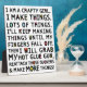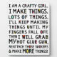 This plaque features text written and typography design by Kathy R. Jeffords, who is admittedly a crafty girl but has never reattached any body parts with a glue gun. It'd make the perfect gift for that crafty girl you know and love...or the perfect addition for your very own craft room, art studio, or sewing area! Eye-catching in mostly black and white with pops of lots of colours, it'll add a touch of cheer to any room (and likely smiles to faces!)