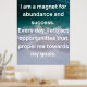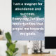 I am a magnet for abundance and success. This phrase emphasizes the belief in one's inherent ability to attract abundance and success into their life. It embodies the idea that by cultivating a positive mindset and aligning oneself with prosperity, one can draw in opportunities and experiences that lead to fulfilment and achievement.
