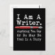So you love to write and tell stories? Then you would love this funny I AM A Writer Anything you do may be used in a story gift. Great for any author.