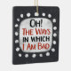 A fun typographic design that says "Oh! The Ways In Which I Am Bad". It's black and red text on a white rectangle with funky, playful white dots surrounding it, all on a grey background.