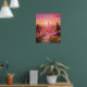 This is a pretty affirmation poster. The affirmation is I Am Enough. The design was created with artificial intelligence art. The artwork features a pink, yellow and lavender sunrise with clouds, trees, evergreen trees, flowers, sunshine and a path. The picture showcases the sky, the sunrise and pink and yellow flowers. The affirmation I Am Enough is centred on the poster in a pink colour. You can change the text by clicking the Personalize button. The size of the poster shown is 20" by 24". The poster you see is a matte poster.