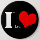I Am In Love text and a drawing of the red heart. Love, romance and Valentine's Day theme for fun and good mood. Black button. You can change the colour of the background