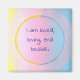 I am loved, loving, and lovable is printed in blue letters on a blend of yellow, pink, and blue, on custom magnets. The text can be easily customized on the template form. Thank you for shopping at CherylsArt on Zazzle.