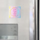 Affirmation art magnet, I am loving what I do, is on a blended background of yellow, pink, and blue.