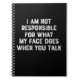 sarcasm Quote says "I Am Not Responsible For What My Face Does When You Talk" for those who loves Sarcastic Jokes, Great gift for someone that has a sense of humour and loves Funny Saying Jokes