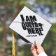 It's a sentiment most seniors share - show me the door because I am out of here. They can't wait to cross the stage and head out into the real world. (They'll learn!) Black and grey design with graduation cap and customize with your class year. Oversized and wonky block font with angled shadow. Perfect for your final year of school. Best on light backgrounds only. Also available in white on a black background. Change the background to match your school colours.