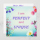 Beautiful floral affirmation poster "I am perfect and unique". You can personalize it adding your own text on the white side of a card.