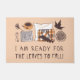 This cozy fall design perfectly encapsulates the anticipation and warmth of the autumn season with the phrase "I Am Ready For The Leaves To Fall!" The text is written in a playful, hand-drawn font that complements the inviting, homey illustrations above it. The design features a collection of comforting fall essentials: a steaming cup of coffee, an open book, a pair of glasses, a fluffy pillow, a plaid blanket, and a fallen leaf, all arranged in a charming, relaxed composition. The soft, warm colour palette, dominated by shades of beige, brown, and orange, evokes the peaceful and nostalgic feelings of autumn.