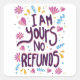 Lovely and cool design with the Quote "I am Yours, No Refunds". Show your love and affection to your boyfriend, girlfriend, husband, wife dad, mom, granddad, grandma in a funny and romantic way.