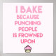 NewParkLane - Kitchen Poster, with funny quote 'I bake because punching people is frowned upon' in modern gradient / ombre hot pink typography, with a little cupcake. Fun poster for your kitchen wall or as a gift for anyone who loves baking!
