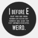 I Before E English Grammar Exceptions To The Rule Classic Round Sticker
