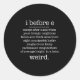 I Before E Except When Keith Weird Funny Grammar M Classic Round Sticker