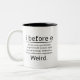 This design features the mnemonic "i before e except after c" to highlight the quirks of the English language and add a playful touch to your morning routine.
