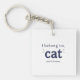This design uses a soothing color palette with dark blue text on a light gray-blue background. It makes a great gift for a friend, family member, or yourself if you're proudly owned by a cat! Perfect for printing on t-shirts, mugs, posters, or social media sharing.