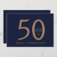 Fifty. 50th Birthday Invitation. Funny. Man. Date, place, RSVP included. Navy & Gold. No gifts. Surprise.