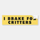 I Brake for Critters, Bumper Sticker, Funny Sticker