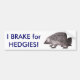 I Brake for HEDGIES! Save Hedgehogs Bumpersticker Bumper Sticker