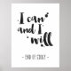 Inspirational poster displaying the phrase "I can and I will - end of story" in black brush script with an organic ink texture to achieve an authentic, hand lettered look. Designed to look great on all portrait oriented poster sizes. Please do check if the image needs to be repositioned or resized after changing the poster size.