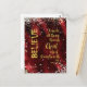 Red with gold typography/calligraphy. Faux glitter edges.
