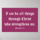 Custom poster featuring Philippians 4:13 Scripture quote 'I can do all things through Christ Who strengthens me.' Order as shown or customize with your own text and / or images.