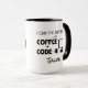 Personalized I Can Fix Anything With Coffee and Code Funny Typography Mug. Choose from many styles. Text in black reads I can fix anything with coffee and code, images of a computer screen and mug of coffee. Funny computer technology office mug. Clever gift for computer programmers, coders and coffee lovers. Geek humour.