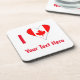 Personalized beverage coaster features a Canadian design to make your own statement. The funky looking heart shaped flag of Canada is used instead of the word LOVE. You add your personalized text to tell the world what you love. Toronto? Canada Day? Mom? Dad? Quebec? Christmas? Your item, your rules. You can create a special gift for someone special, too. Cool housewarming gift.