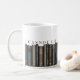 An original illustration of old and rare books in muted colours with ornate, gilded spines, as if viewing a shelf in an old library. Customizable text lines can be personalized, but are shown with the famous Thomas Jefferson quote, "I cannot live without books." A fitting mug for any book lover, scholar, librarian, teacher or student that loves books and reading.