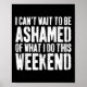 I Cant Wait To Be Ashamed Of What I Do This Weeken Poster
