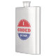 The product is a good size and came exactly as it was pictured. The lid is not attached to the flask, which could be dangerous on drunken nights... The print came out surprisingly well and looks very sharp. Would definitely recommend.