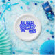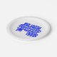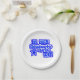 A White, 7" Round paper plate, = optional, with a Drawing/Design, in navy blue, with a lighter blue stripe, going through Letters, and numbers, and a star, = I DID it1, Graduate 2026, =(Drawing/Design by P.J.M.)