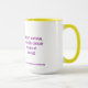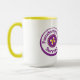 Coffee ringer mug with the slogan "I didn't survive appendix cancer to die from stress!" on one side and the Pseudomyxoma Survivor button logo on the other.