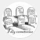Black and white illustration of six headstones and text I Dig Cemeteries.