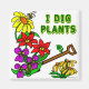 I Dig Plants, fun gardener saying with blooming daisy, sunflowers and violets in red, yellow and purple, with a bee, lady bug and a shovel. Great for gardening or reading seed catalogues by theGardenPages