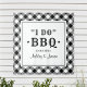 Festive and stylish custom wedding tapestry sign / party backdrop for a backyard "I Do Barbecue" event. Personalize with the bride and groom names and date. Includes a black and white gingham / tablecloth plaid patterned border and elegant rustic typography. Perfect for a casual summer outdoor BBQ wedding party or reception.