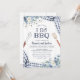 Invite guests to a blue themed I Do BBQ couples shower or casual rehearsal dinner to celebrate the happy couple! This invitation features dusty blue watercolor florals with accents of navy gingham against a white wash barn board.