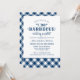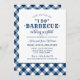A festive and stylish wedding wedding reception celebration invitation for a casual backyard BBQ event. Text includes "Join us for an "I do" Barbecue Wedding Reception" in honour of a couple recently married. Navy blue and white design colours.