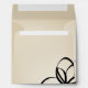 An envelope featuring an illustration of a black flower on bottom left of front and bottom right of back. Flap says, "I Do." Background and inside are beige. Look for matching wedding invitations at Jill's Paperie.